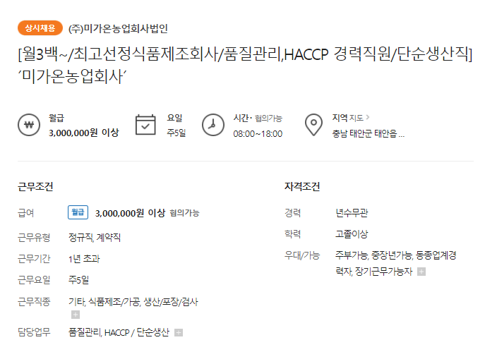 - 품질관리 ㅣ HACCP ㅣ 생산직을 모집합니다