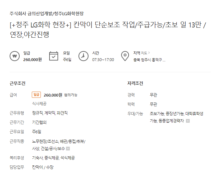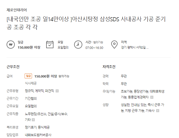- 근무시간 별도 ㅣ 일급 15만원 평균기재