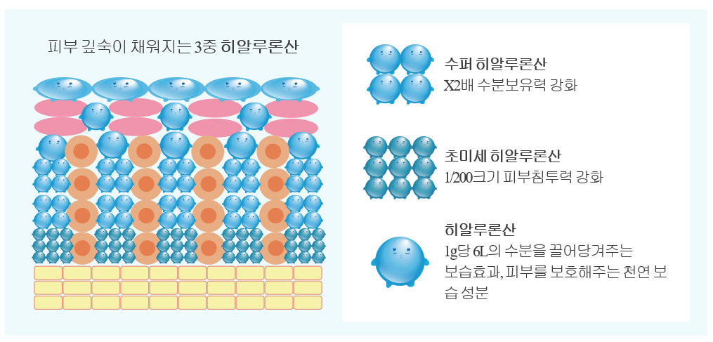 수퍼 히알루론산은 하다리보 슈퍼 히알루론산은 수분 보유력 2배 증가