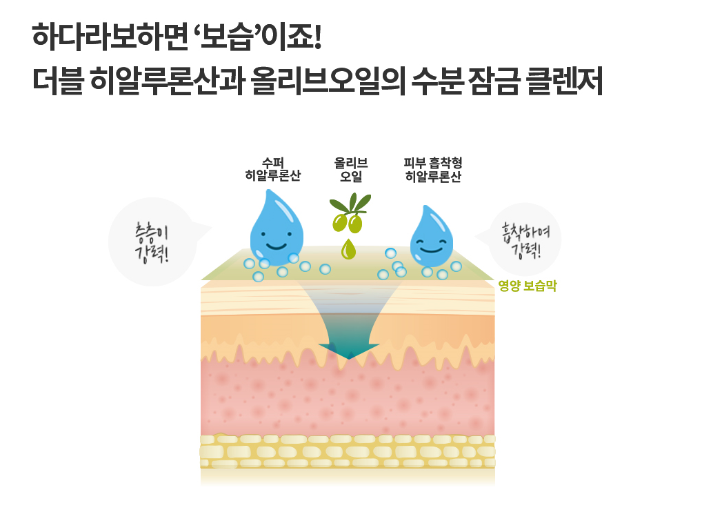 - 엄선된 고순도 올리브오일 속 비타민 E와 프로비타민이 피부노화