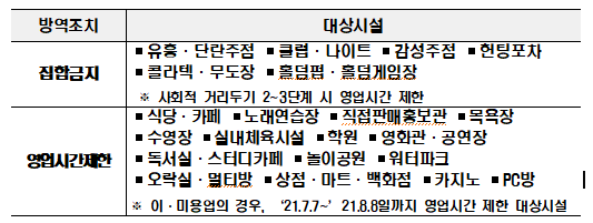 - 감염병 예방법 제 49조 제 1항 2호에 따른 집합금지, 영업시간 제한 조치를 이행함에 따라