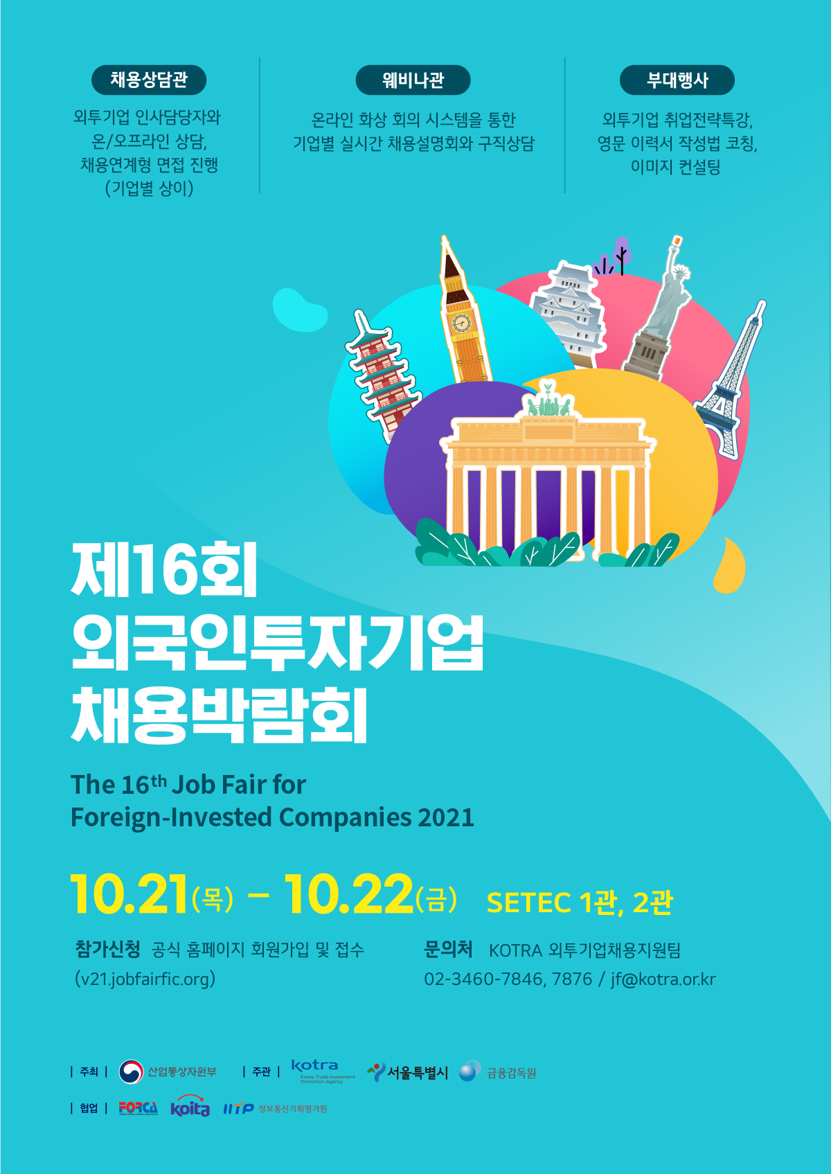제16회 외국인투자기업 채용박람회가 온/오프라인으로 10.21(목)~10.22(금) 개최합니다
