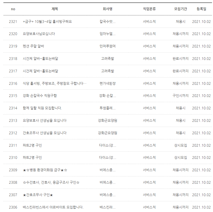 - 구인정보는 강화군에 입점한 자영업이나 회사들이 직접 구인광고를 올리는 형태입니다.