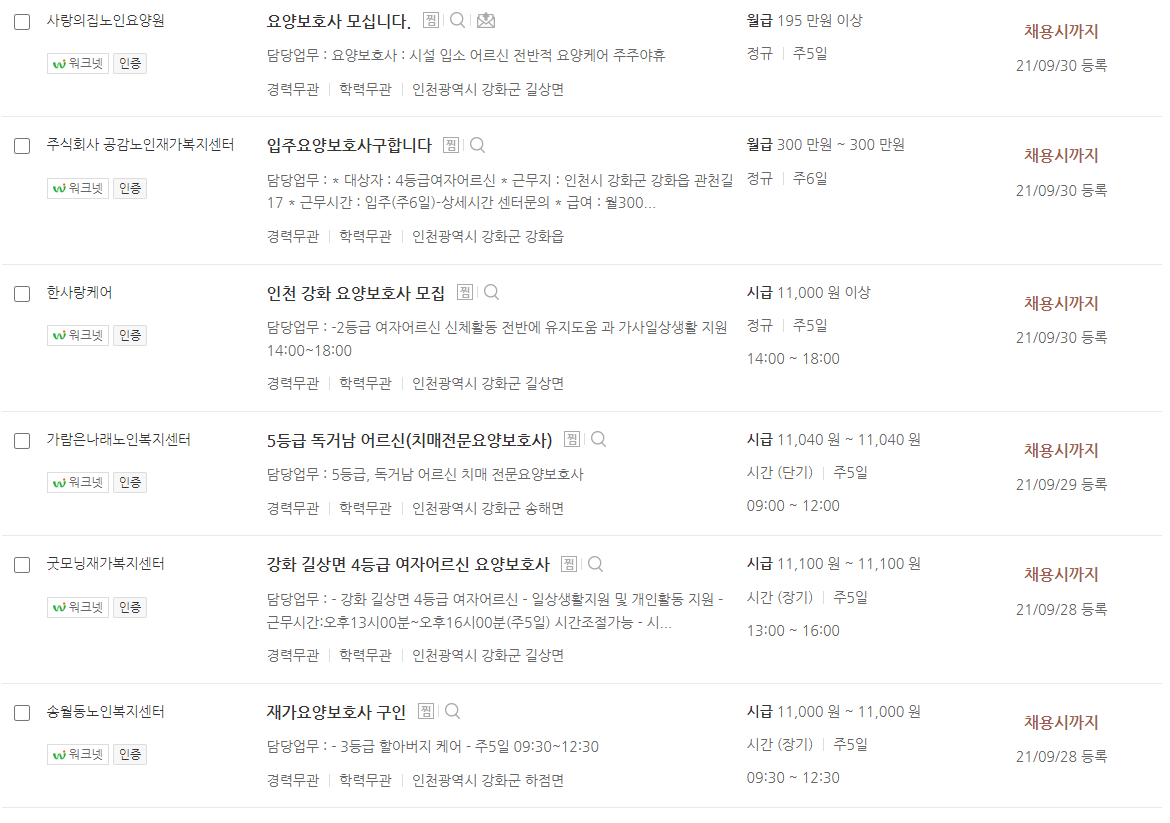 오늘은 강화군의 일자리에 대해서 알아보았습니다. 각 지역에서의 채용정보는 즉시 취업이 가능하고 다소 중장년층과 경력단절 재기가 필요한 분들에게 더욱 효과적일 수 있습니다.