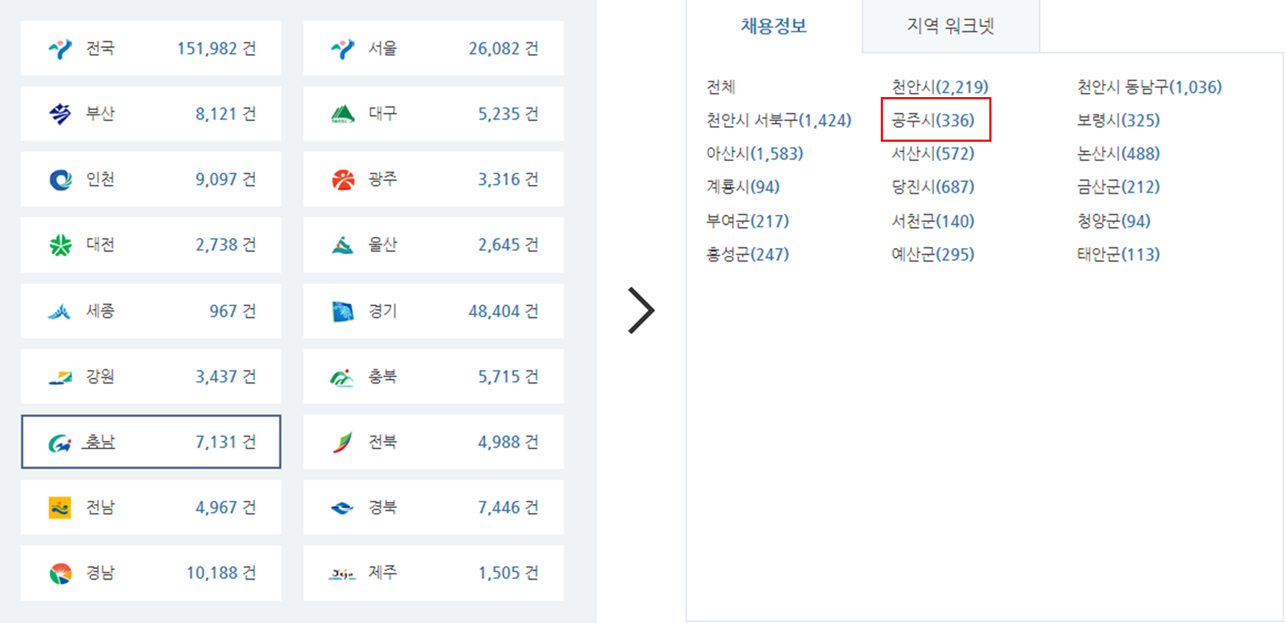 공주시청 워크넷 일자리 알아보기