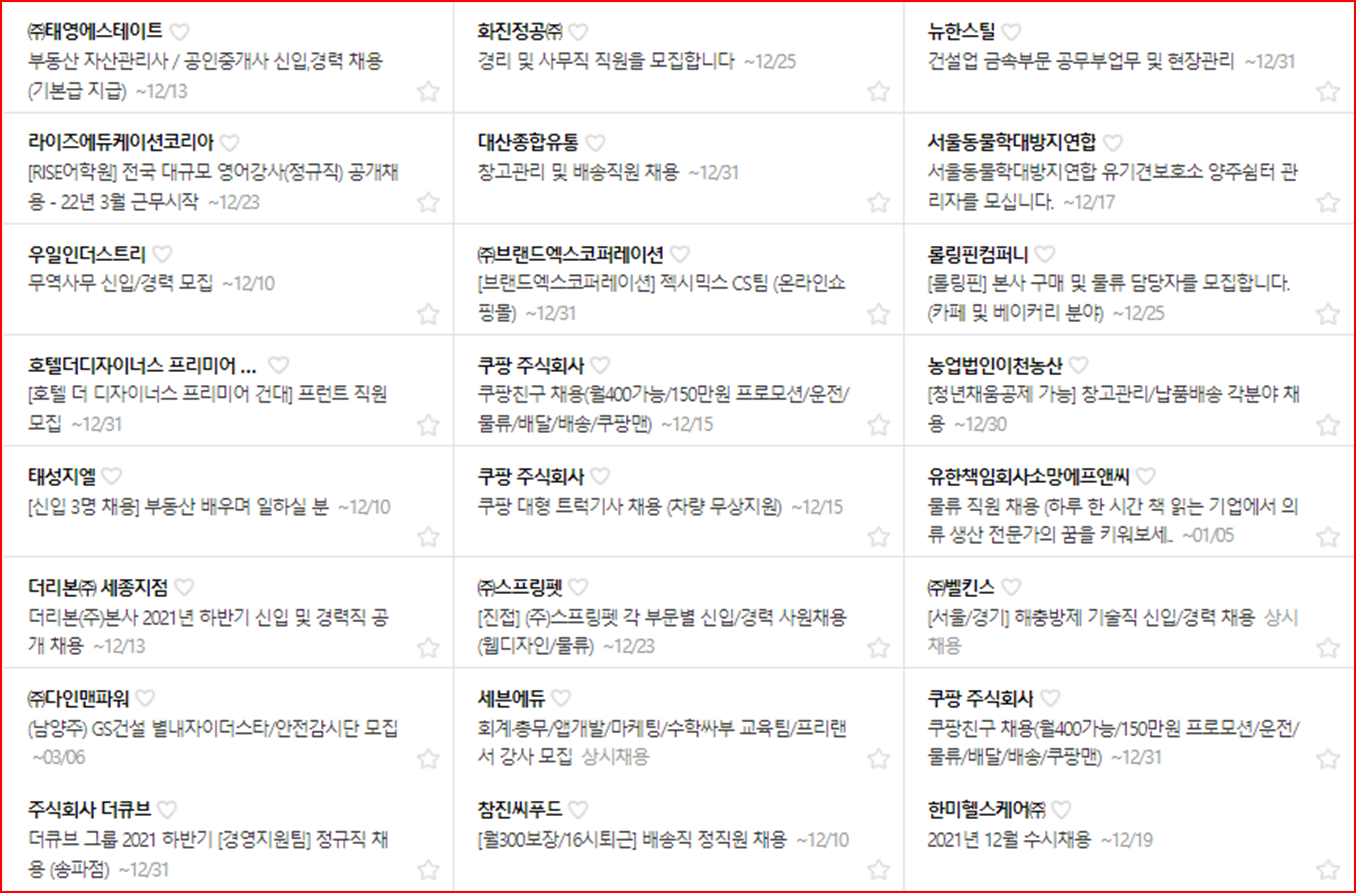 워크넷, 잡코리아와 벼룩시장의 일자리를 아래에서 확인하겠습니다.