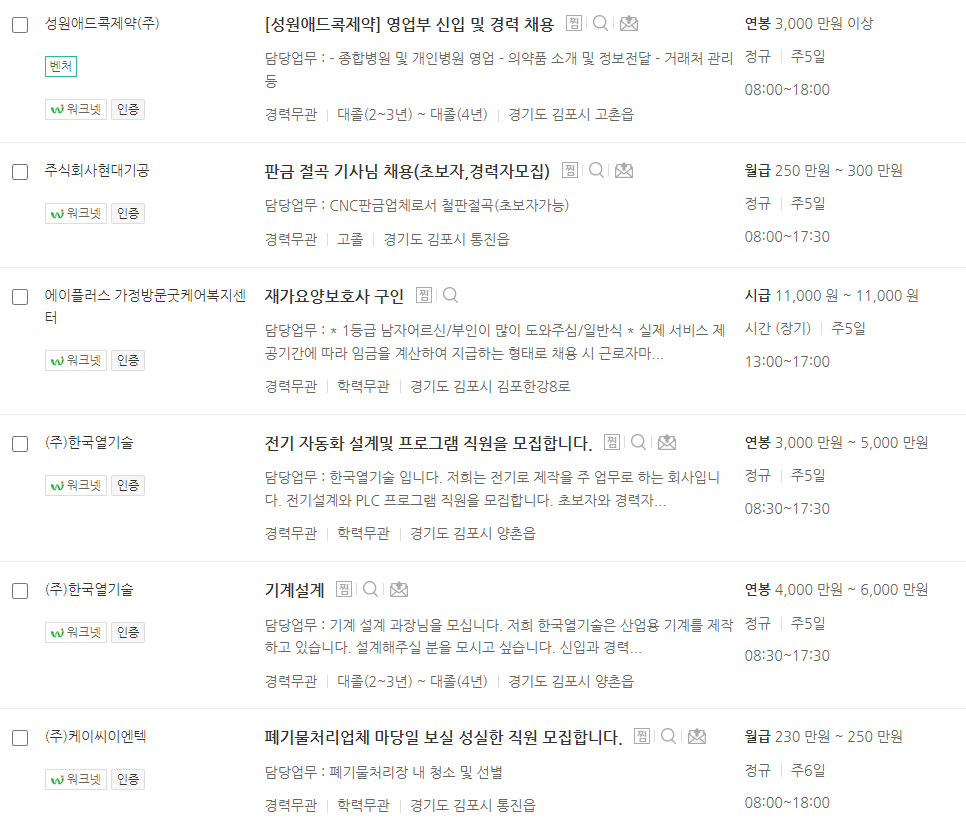 김포시의 취업정보는 워크넷 취업사이트를 직접 접속하셔서 구인정보를 찾아보셔도 됩니다.