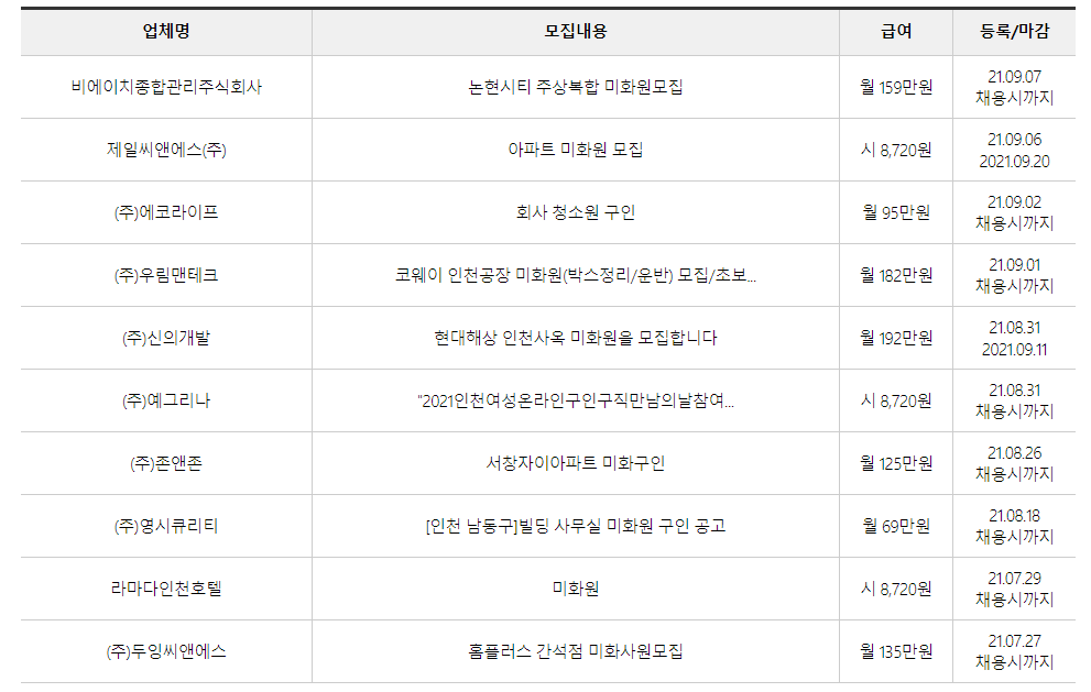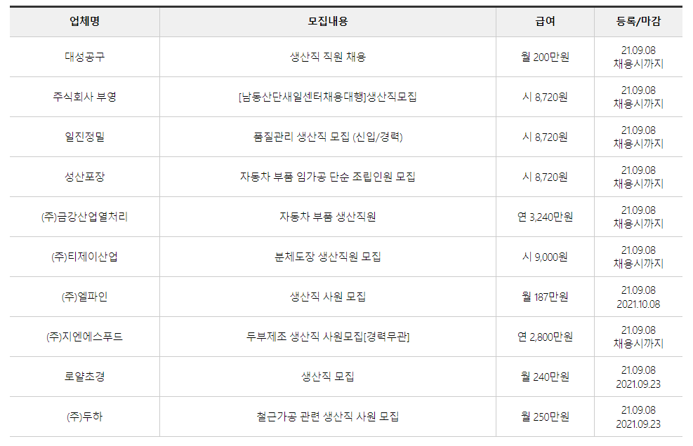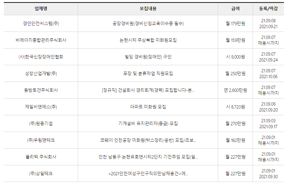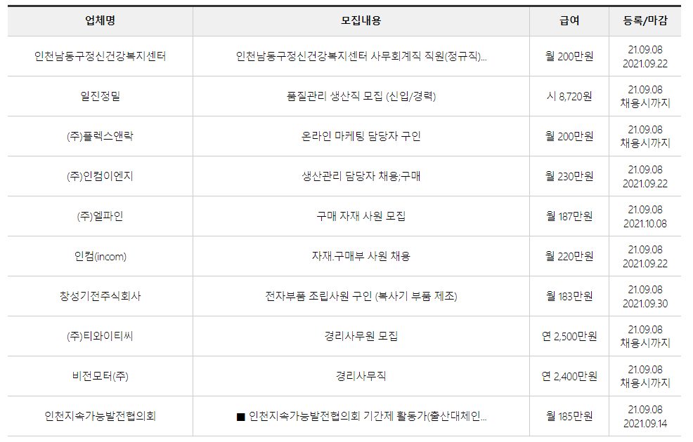 남동공단이 주요 구인구직 대상이다 보니, 많은 채용을 하고 있습니다.