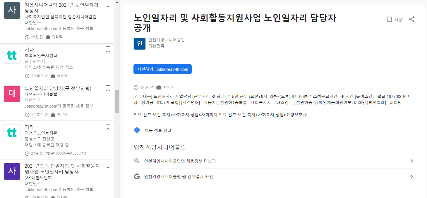 오늘의 노인일자리는 여러 사이트에서 검색하여, 직접 확인하실 수 있게 전부 다 올려드리겠습니다. 참고 바랍니다.