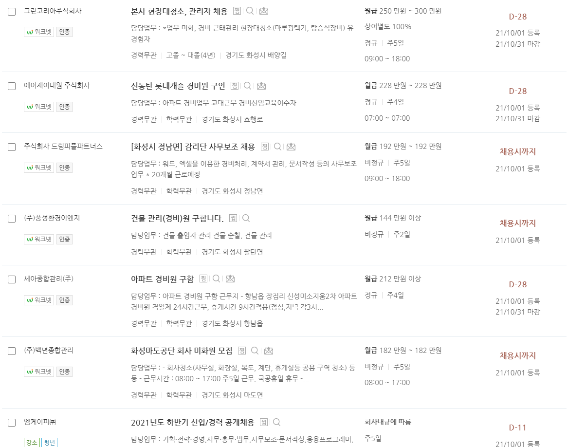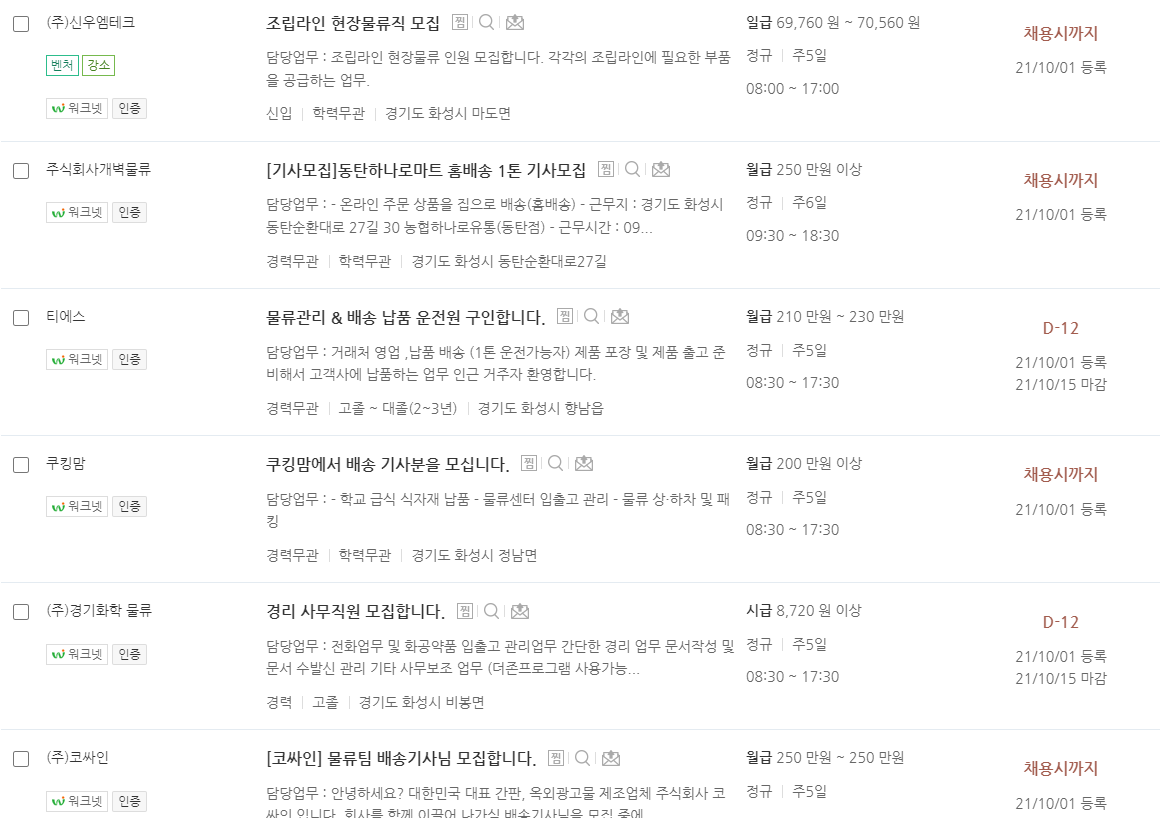 동탄 일자리 워크넷 구인구직 정보 Top 5
