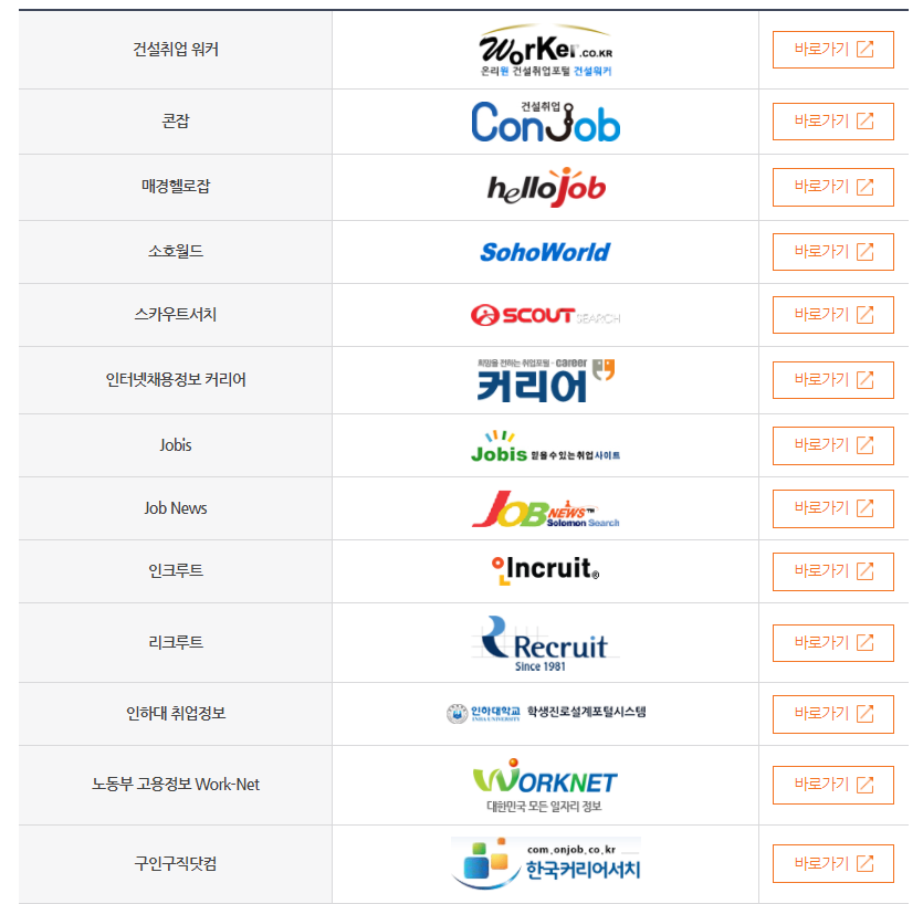 다. 구인/구직 메뉴는 현재 일자리 포털사이트를 안내하고 있습니다. 대표적인 사이트를 참고하여, 일자리를 알아보겠습니다.