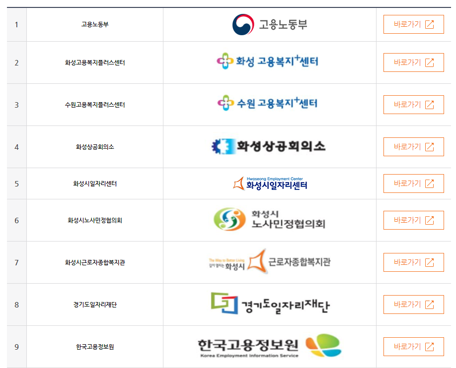 위에 열거된 워크넷과 화성시 일자리센터는 같은 겁니다. 다만, 워크넷에서 지역정보를 화성시로 지정하면 '화성시 일자리센터'로 링크되는 것입니다.