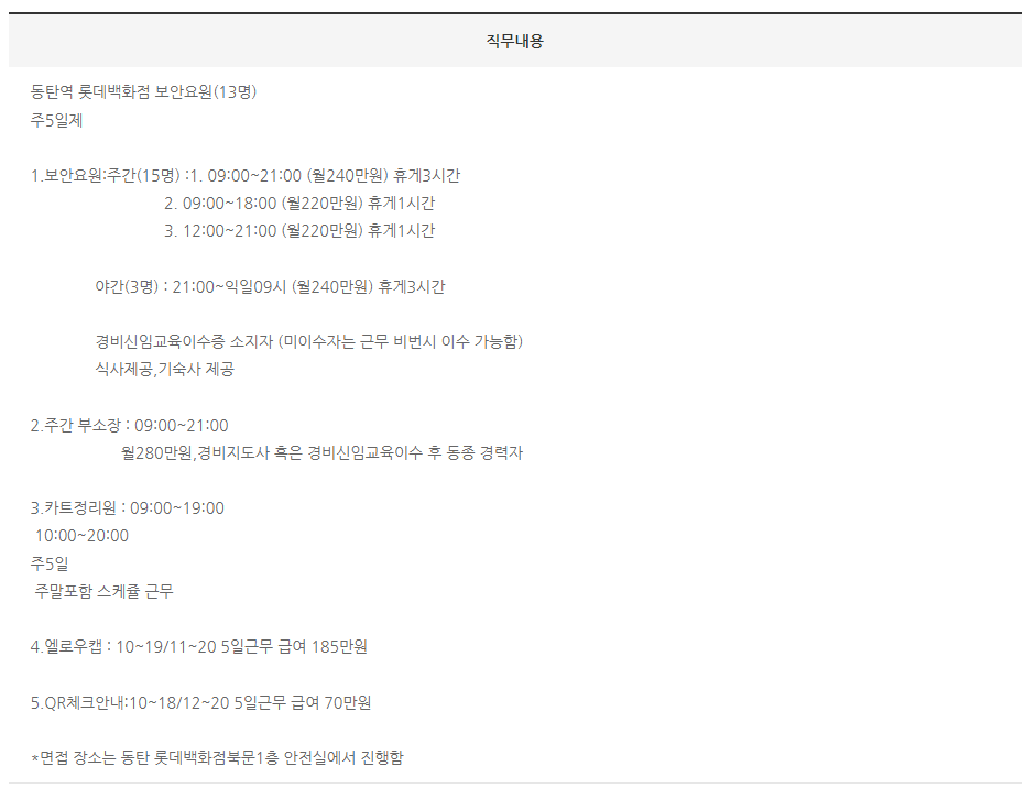 - 롯데백화점 보안, 경비, 캐셔, 보조스탭 모집