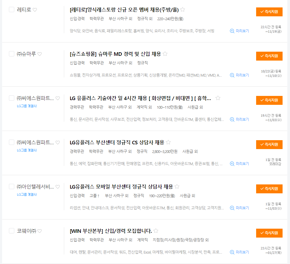 사하구 잡코리아 일자리 알아보기