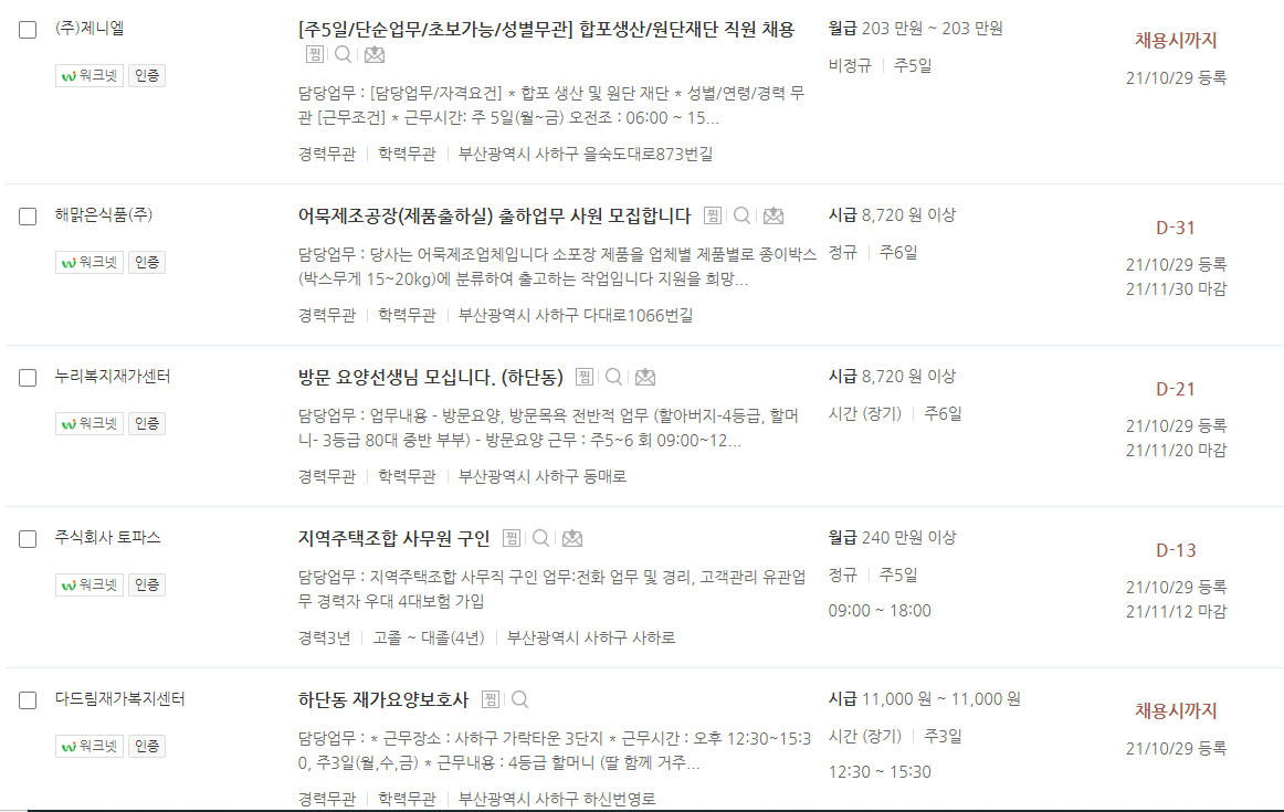 사하구 워크넷 일자리 알아보기