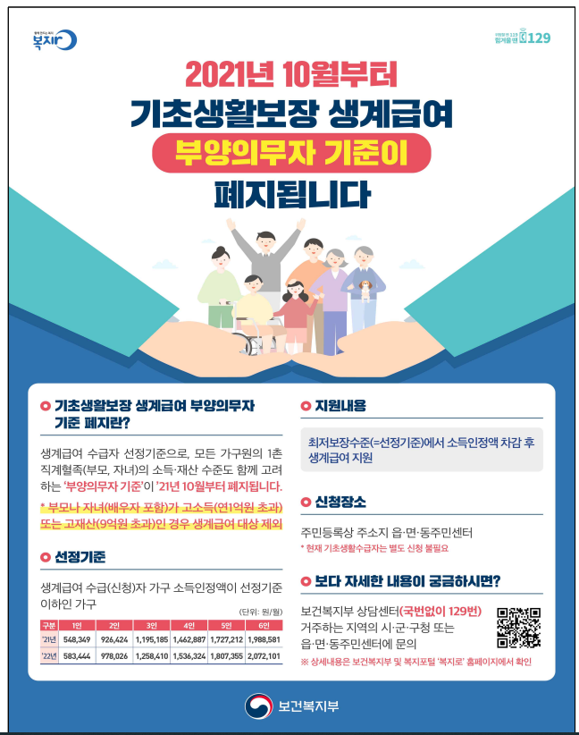 ’21.10월 [생계급여 부양의무자 기준 폐지]