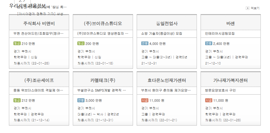 부천시청에서 제공하는 일자리는 아래를 통해 확인해보세요.
