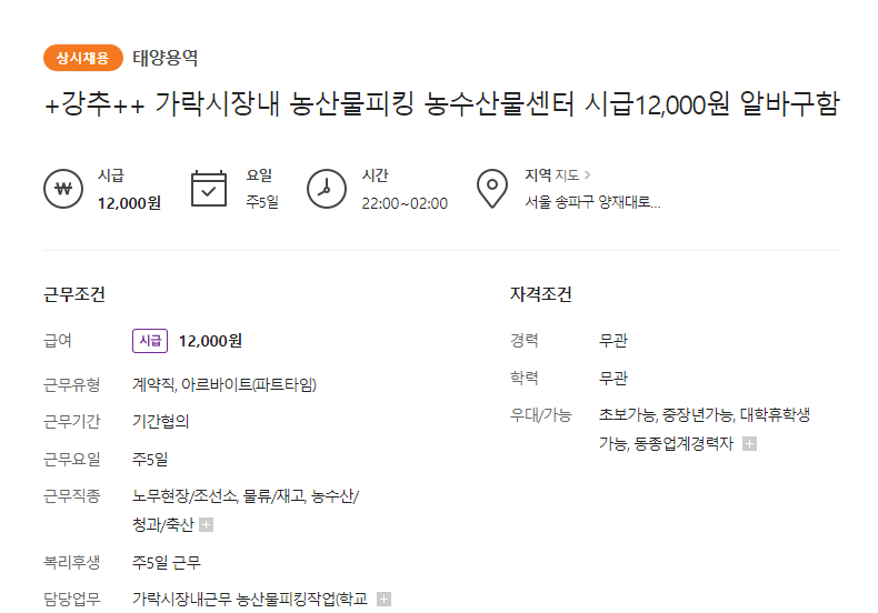 - 농산물 피킹 ㅣ 농수산물센터 알바 ㅣ 시급 12,000원