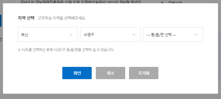 ② 지역검색에서 부산 > 수영구를 선택합니다.
