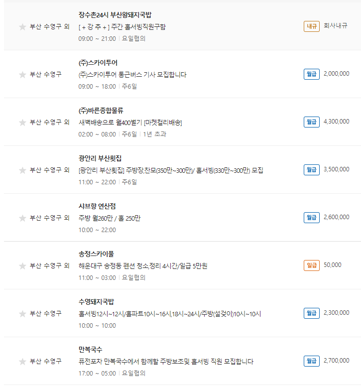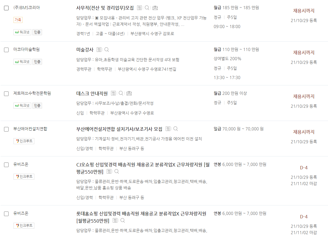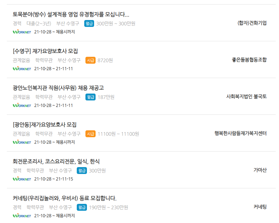 수영구 중장년 일자리 워크넷 수영구 벼룩시장 구인구직 정보