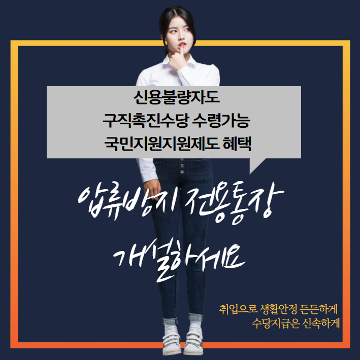 압류방지 전용통장은 전국 11개 금융기권에서 '취업이룸통장' (압류방지 전용계좌)를 발급 받으시면 됩니다.
