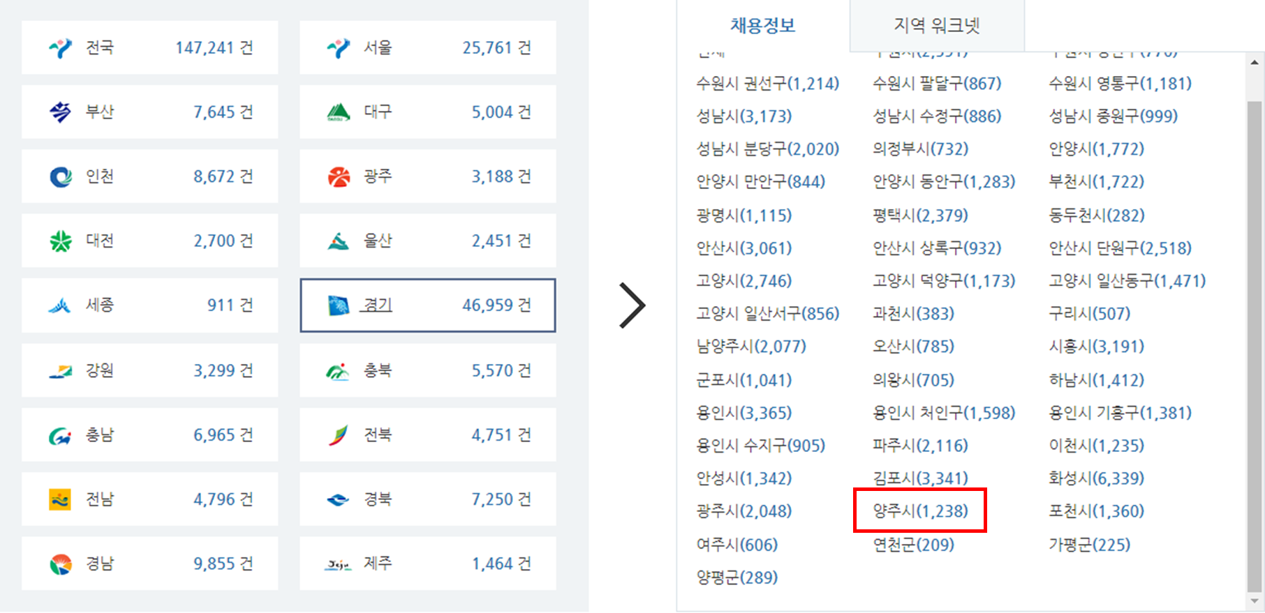 양주시청 워크넷 일자리 알아보기
