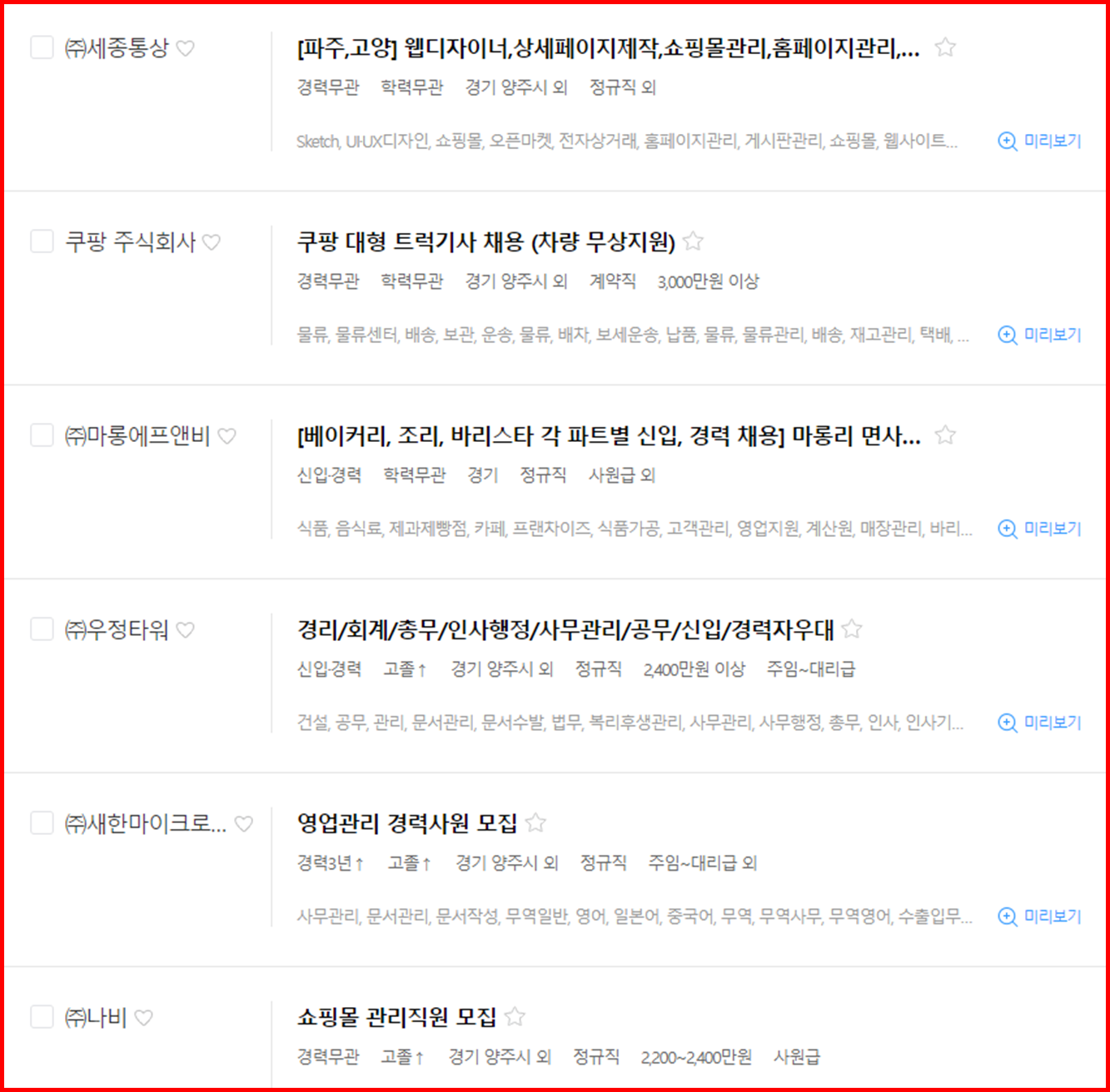 양주시 잡코리아 일자리 알아보기