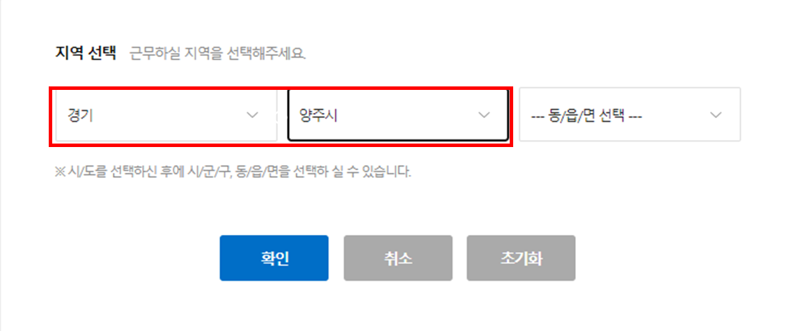 먼저, 잡코리아에 접속 > 지역별 세부메뉴에서 경기도 > 양주시를 선택하시면 됩니다.