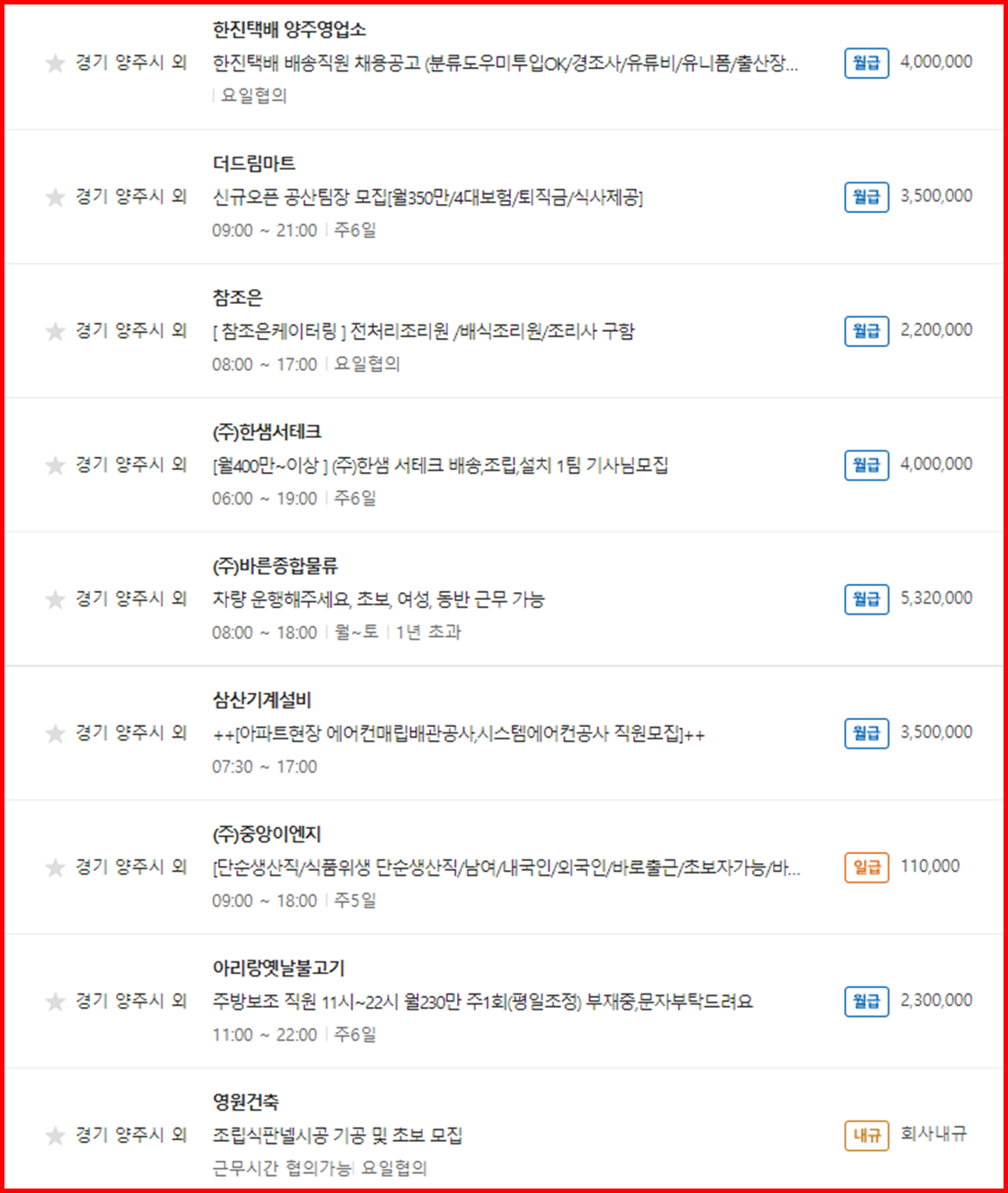양주시 벼룩시장 일자리 알아보기