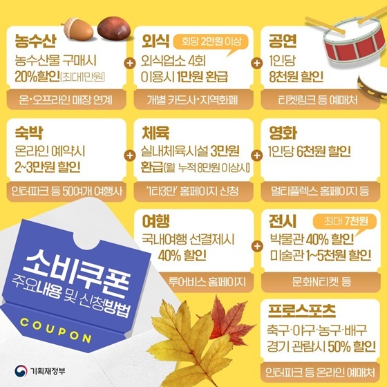 방역전환과 연계하여 대면 업종 등 피해분야 지원 및 민생 경제 활성화를 위한 소비쿠폰을 11월부터 재개한다고 합니다.