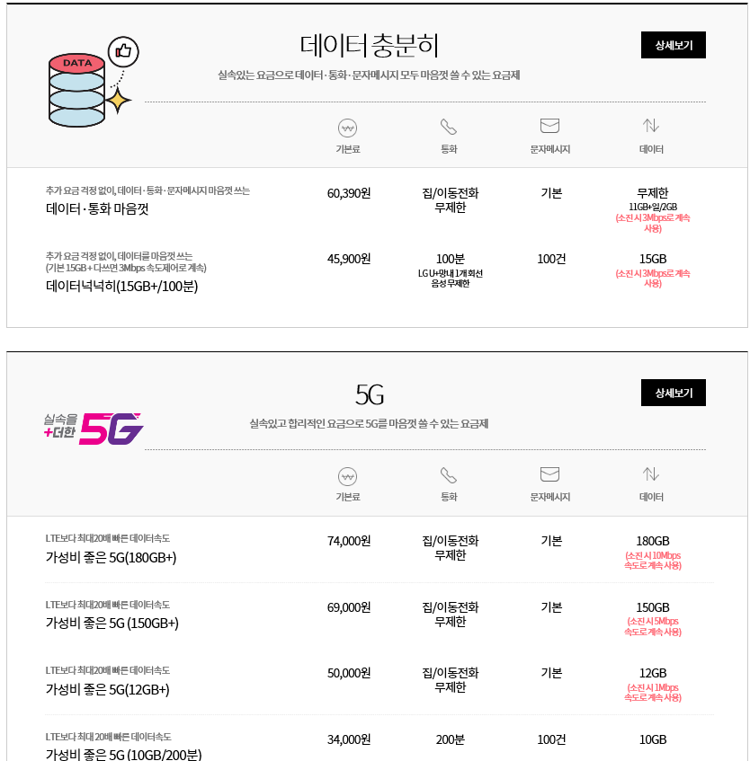 최근에 유플러스에서 인수한 헬로모바일 요금제는 다음편에서 다루도록 하겠습니다.