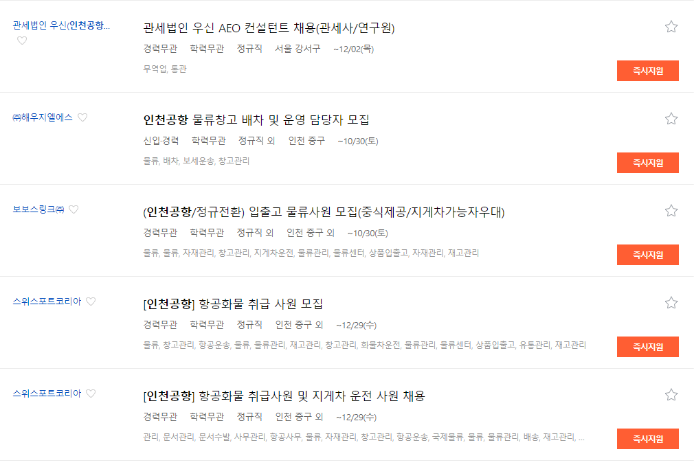 인천공항 일자리 워크넷 구인구직 정보 베스트 5